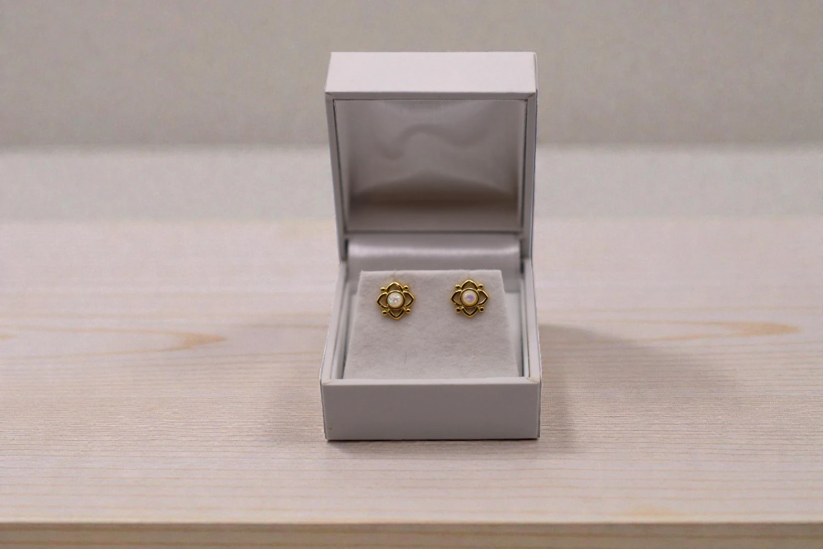 Blomster opal ørestikker i forgyldt Sterling sølv (stemplet 925). Størelse på ørestik: 8,5 mm*8,5mm