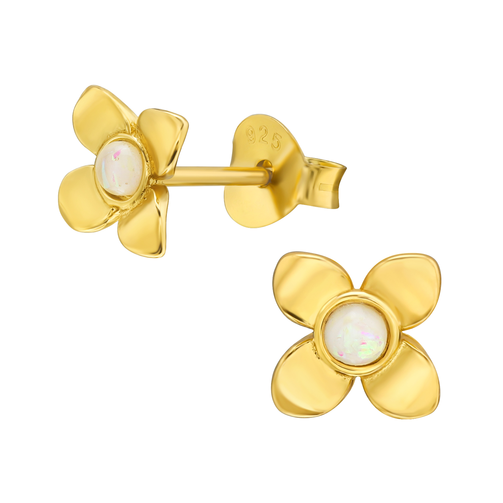 Søde blomster ørestikker med opal i forgyldt Sterling sølv (stemplet 925).
