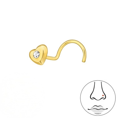 Hjerte næsepiercing med klar zirkon i forgyldt sterling sølv
