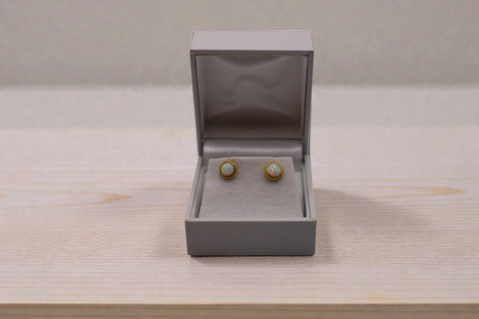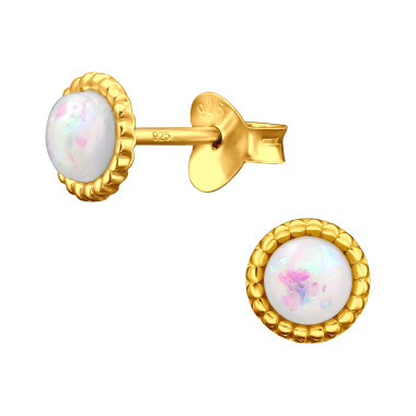Opal ørestikker i forgyld Sterling sølv (stemplet 925). Størelse på ørestik: 6 mm x 6 mm