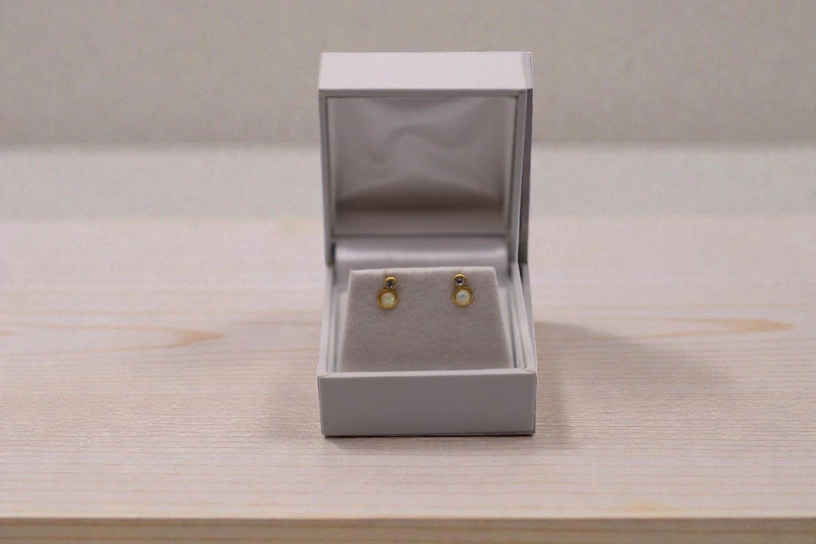 Opal og zirkon ørestikker i forgyldt sølv.
