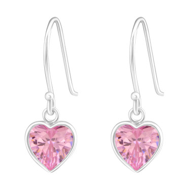 Pinke hjerte øreringe i sølv