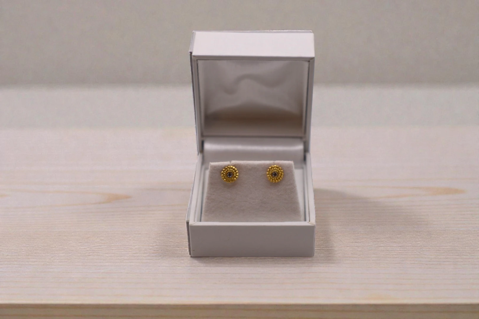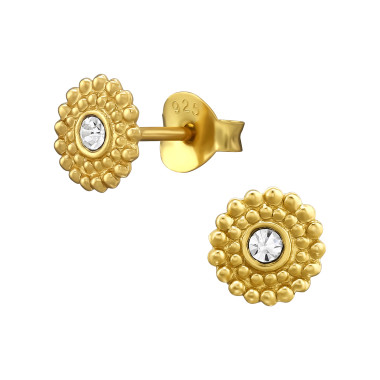 Runde krystal ørestikker i forgyldt Sterling sølv (stemplet 925).